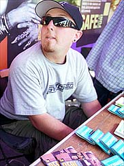 ![]() Chris Abrego dispensing AIDS information at a table at the Ozzfest 2001 tour stop in Camden, N.J.When Ozzfest 2001 rolls into PNC Bank Arts Center in Holmdel, N.J., today for the last two concerts of its summer tour, all the usual suspects will be there amid the nose rings, tongue rings, lip rings and tattoos. The event will include headliners like Marilyn Manson, groups like Pure Rubbish and all-around crowd-pleasers like the master of ceremonies, the Reverend B. Dangerous, who on the tour's swing last month through Camden, N.J., stapled his shirt to his tongue to great acclaim. In the sea of black-clad audience members, though, there will be a less ostentatious member of the tour, Chris Abrego, a pierce-lipped 23- year-old resident of Bayside, Queens, who hands out condoms and pamphlets and talks to metal fans about AIDS. This is the second year Mr. Abrego has crossed the country with Ozzfest, living with the tour crew and setting up a stand at each of 40 concerts to answer questions about safe sex, distribute free condoms supplied by Trojan Brand Condoms and refer people to volunteers from local organizations for AIDS testing and treatment. His work is part of a $2 million annual effort by the music industry and various recording artists to combat the spread of this disease. Its focus is Lifebeat: the Music Industry Fights AIDS, an organization established nine years ago that sends people like Mr. Abrego on the road with summer tours and musical festivals or has them appear with traveling acts at several locations. Scores of performers, from Tony Bennett to Outkast and 'N Sync, are cooperating with the effort. Ozzie Osbourne, Ozzfest's guiding light and the source of its name, adds a 25-cent surcharge to his ticket prices to support the group. "This is a generation that thinks AIDS is very easy to manage — they don't see it as a death sentence," said Sonya Lockett, Lifebeat's communications director, who believes that AIDS outreach programs are not directed at the 13- to 24-year-olds at the core of the Ozzfest audience as much as they are at younger and older age groups. "But these teens listen to and are heavily influenced by the music." Which is where Mssrs. Osbourne and Abrego come in. While Mr. Osbourne supplies the milieu, Mr. Abrego answers questions from concertgoers. "Sometimes they're shy, but they can easily relate to me," he said. "I answer all questions, even if they're stupid." Among the typical ones Mr. Abrego hears are: "Can I get AIDS from kissing?" "Can I play sports with someone who has AIDS?" and "Can you get AIDS from a toilet?" Sometimes people will come by and tell him that they lost a best friend, sibling or parent to AIDS. Among metal heads, Mr. Abrego seems to pass muster. At a recent tour date in Virginia Beach, Kelly Matthews, 19, who works at a Gap outlet, said that health education in school was poor. "I'm more receptive to him because he's around my age," she said. "He's down to earth." Stacey Buchanan, 21, who works as a saleswoman in a clothing store in Virginia Beach, credited him with creating "a good atmosphere and a good vibe." Mr. Abrego came to this work after AIDS touched his own family. His stepfather died of it several years ago, a loss that particularly affected his younger brother, who was 6 at the time. Shortly after graduating from Queensborough Community College three years ago, Mr. Abrego was drawn to Lifebeat by his girlfriend, Danica Kirschenbaum, who worked for the group as a volunteer. He became one as well, and after several days of training, including instruction from doctors, social workers and representatives of the Gay Men's Health Crisis, he was sent out on salary with the heavy metal Sno- Core tour, which featured bands like Fear Factory, Kittie and Slaves on Dope. He finds that there is a better understanding of the threat of unsafe sex in New York and Los Angeles than in the heartland, where there is an attitude that "it won't happen to me because I'm not gay," he said. In many parts of the Midwest, he observed, he had to work doubly hard to reach people, even if they were fans of the same music. But he still thinks he connects with them more often than "a 45-year-old guy who works for the board of health." "The fans are not going to listen to their teachers or guidance counselors," he said. "They will listen to Papa Roach or Ozzie Osbourne at the concert or on the public service announcements. It becomes part of their psyche. It hopefully empowers them to make smart decisions." << PREVIOUS STORY || MAIN STORY INDEX || NEXT STORY >> |